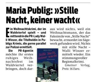 Maria Publig liest aus STILLE NACHT, KEINER WACHT (Gmeiner Verlag) und der neuen WALDVIERTELSPUR (Gmeiner Verlag)